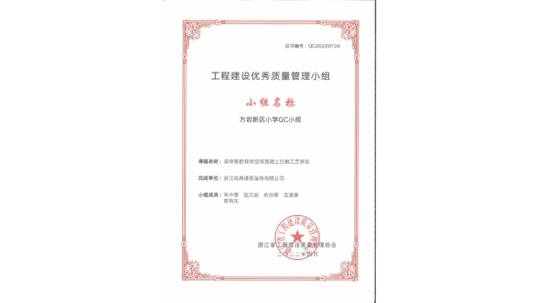 日前,又傳來(lái)一個(gè)喜訊。由浙江省工程建設(shè)質(zhì)量管理協(xié)會(huì)舉辦的“優(yōu)秀質(zhì)量管理小組”評(píng)選活動(dòng)結(jié)果出爐。經(jīng)組委會(huì)專家評(píng)審,經(jīng)典公司...