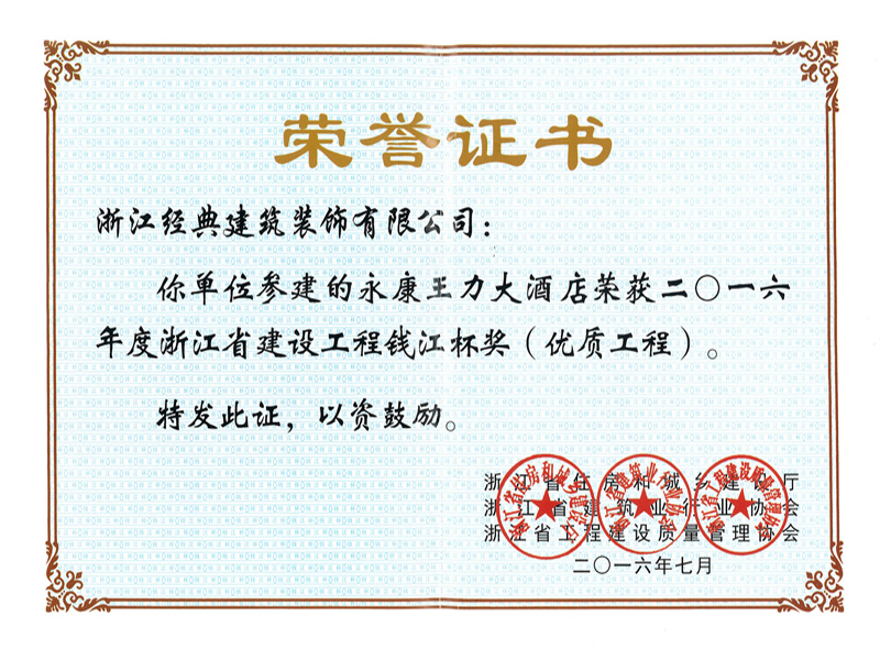 2016年度浙江省建設(shè)工程錢江...